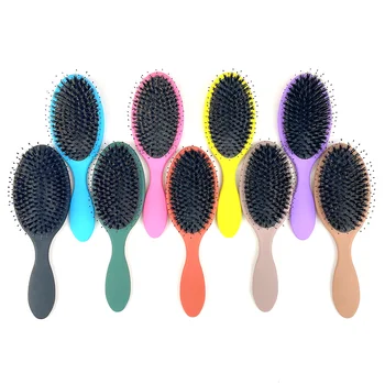 Wholesale Rubber Paint Hair Care Brush Massager Bristle Wet Dry Detangling Hair Brush Soft Cushion Nylon Boar Bristle Hair Brush